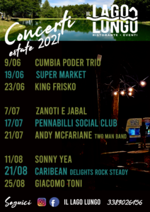 Camminando con il calice in mano a ritmo della musica di DJ COMANDINI potrete degustare i vini a bordo lago e assaggiare i piatti d’ accompagnamento dal ristorante e dalla griglia a vista.